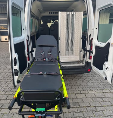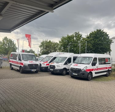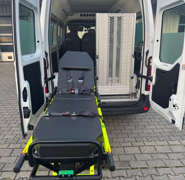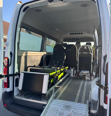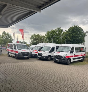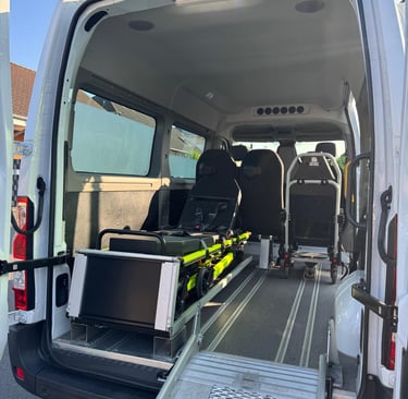 Wir bieten sichere Beförderung mit spezialisierten Fahrzeugen für sitzende, liegende und Rollstuhltransporte.